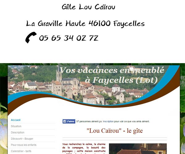 tel 05 65 34 02 72. site : http://lou-cairou-faycelles.jimdo.com